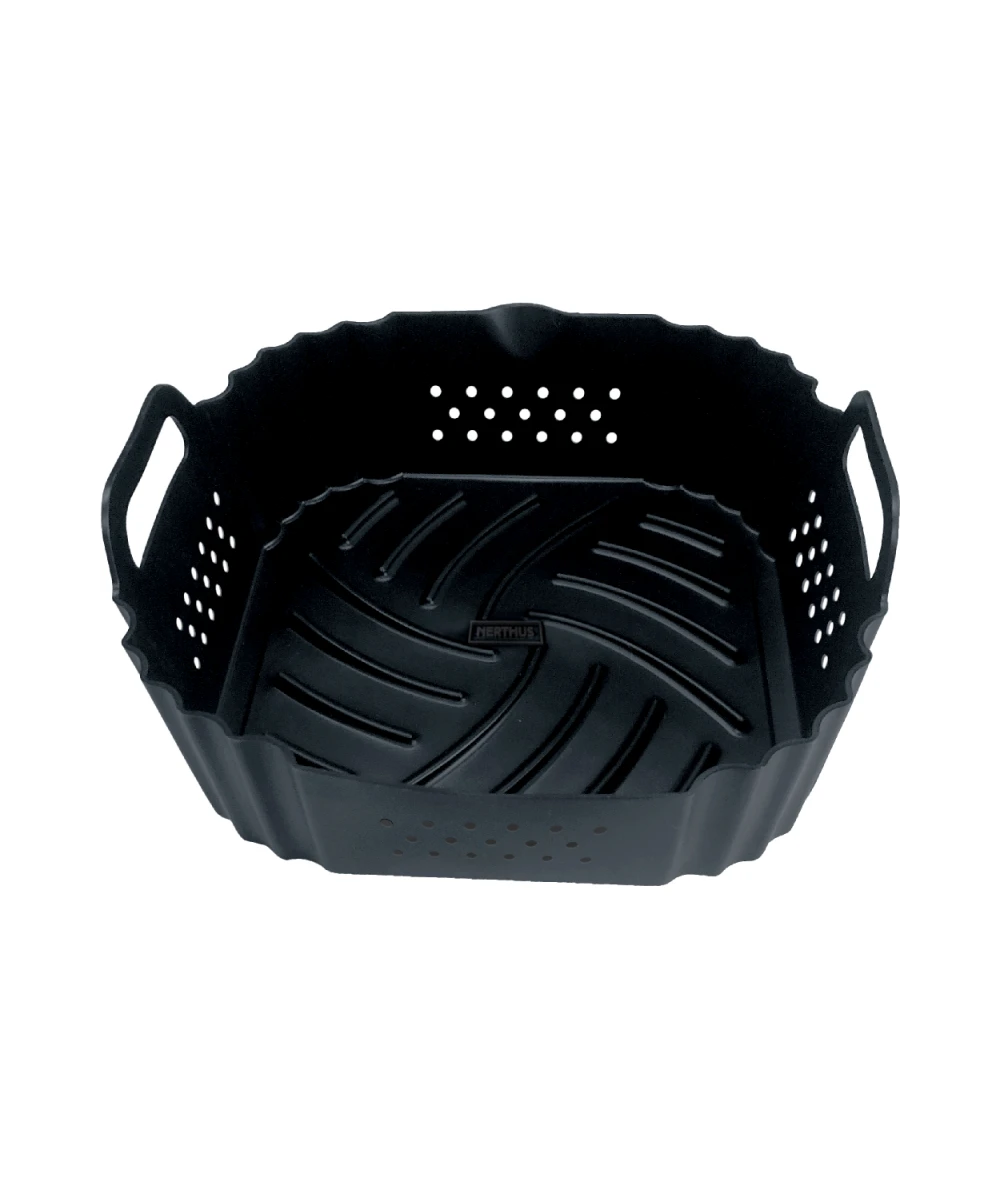 ALTA CALIDAD: Fabricado en Silicona de grado alimenticio y con una gran resistencia al calor freidora de aire. La bandeja de silicona para Freidora de Aire de Nerthus es libre de BPA, 100% respetable para la salud.
