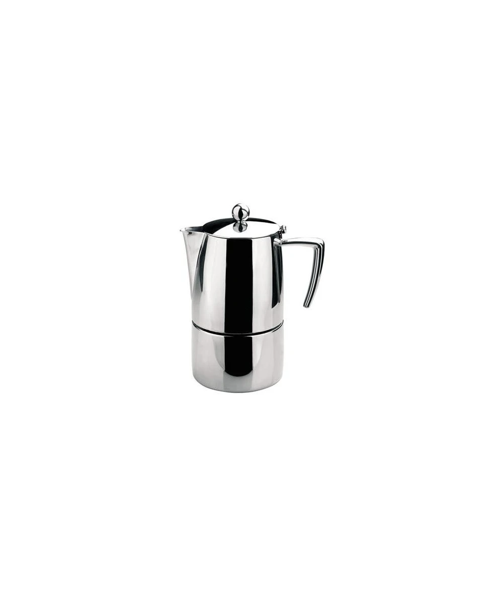 Cafetera Express fabricada en acero 18/10 acabado brillante.