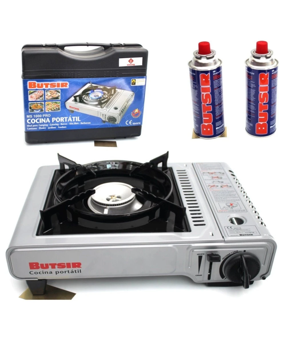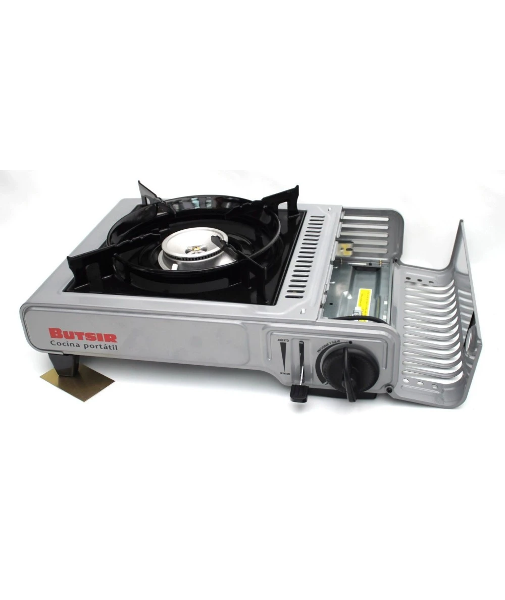 Cocina portátil de fácil montaje. Quemador eficiente de alta velocidad. Encendido piezoeléctrico y potencia regulable. Parrilla esmaltada. Acero de grosor superior. Parrilla más grande y fija para evitar uso inadecuado. Nuevo cuerpo de quemador para optimizar el quemado. Rejillas de ventilación de mayor tamaño. Incluye maletín para transportar y almacenar.