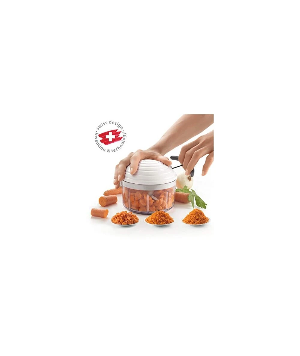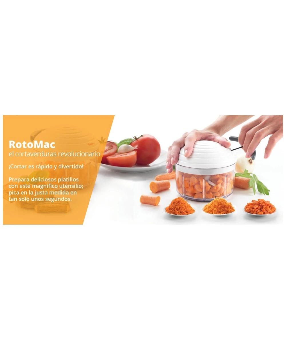 RotoMac revoluciona la forma de cortar, gracias a su sistema suizo de láminas independientes (patentado). Corta diferentes tipos de alimentos, de grueso a fino con pocos movimientos.