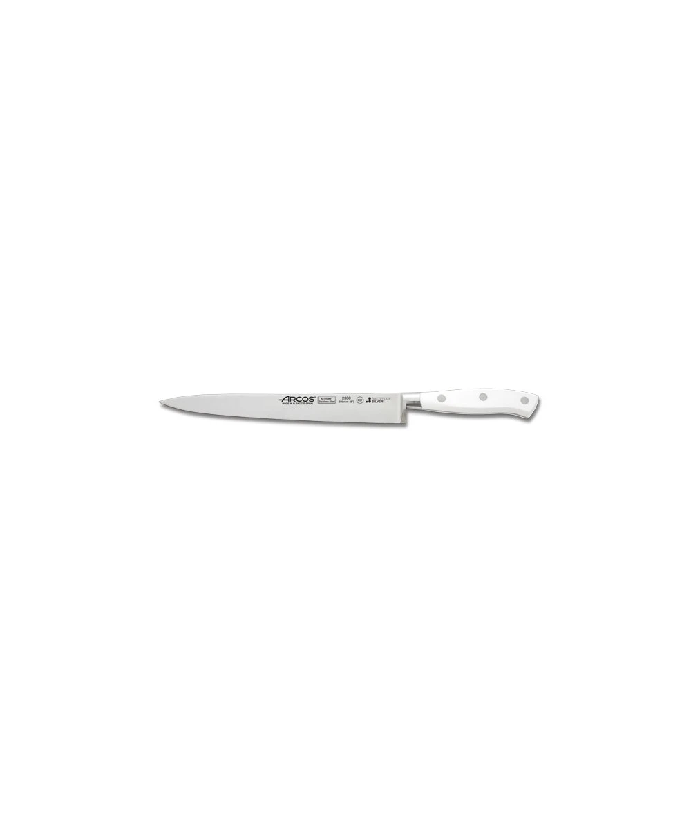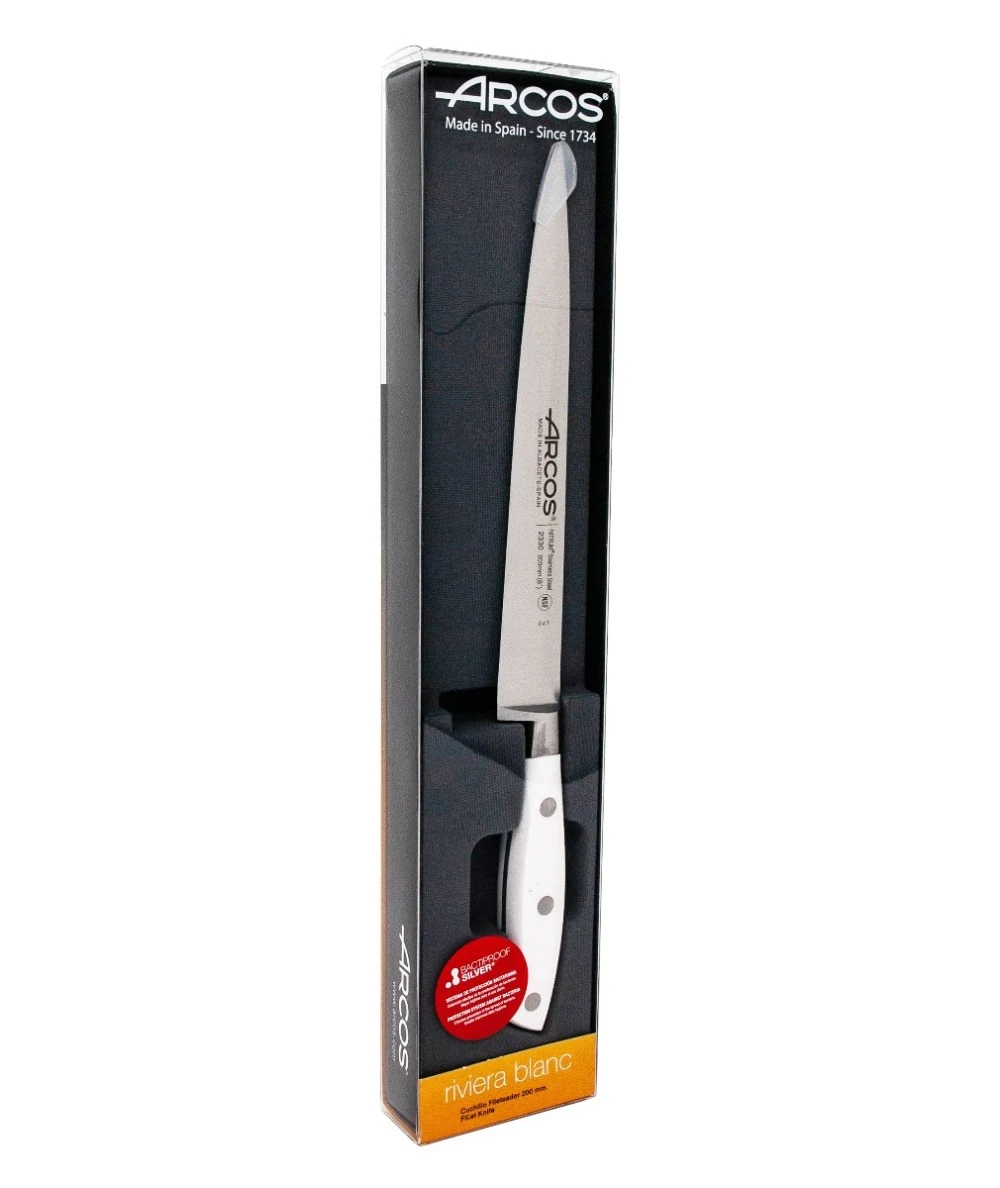 Fileteador de 200 mm de hoja. Forjado en una sola pieza con acero inoxidable NITRUM®, exclusivo de Arcos. Destaca por su mango de color blanco y elegante virola de estilo francés.