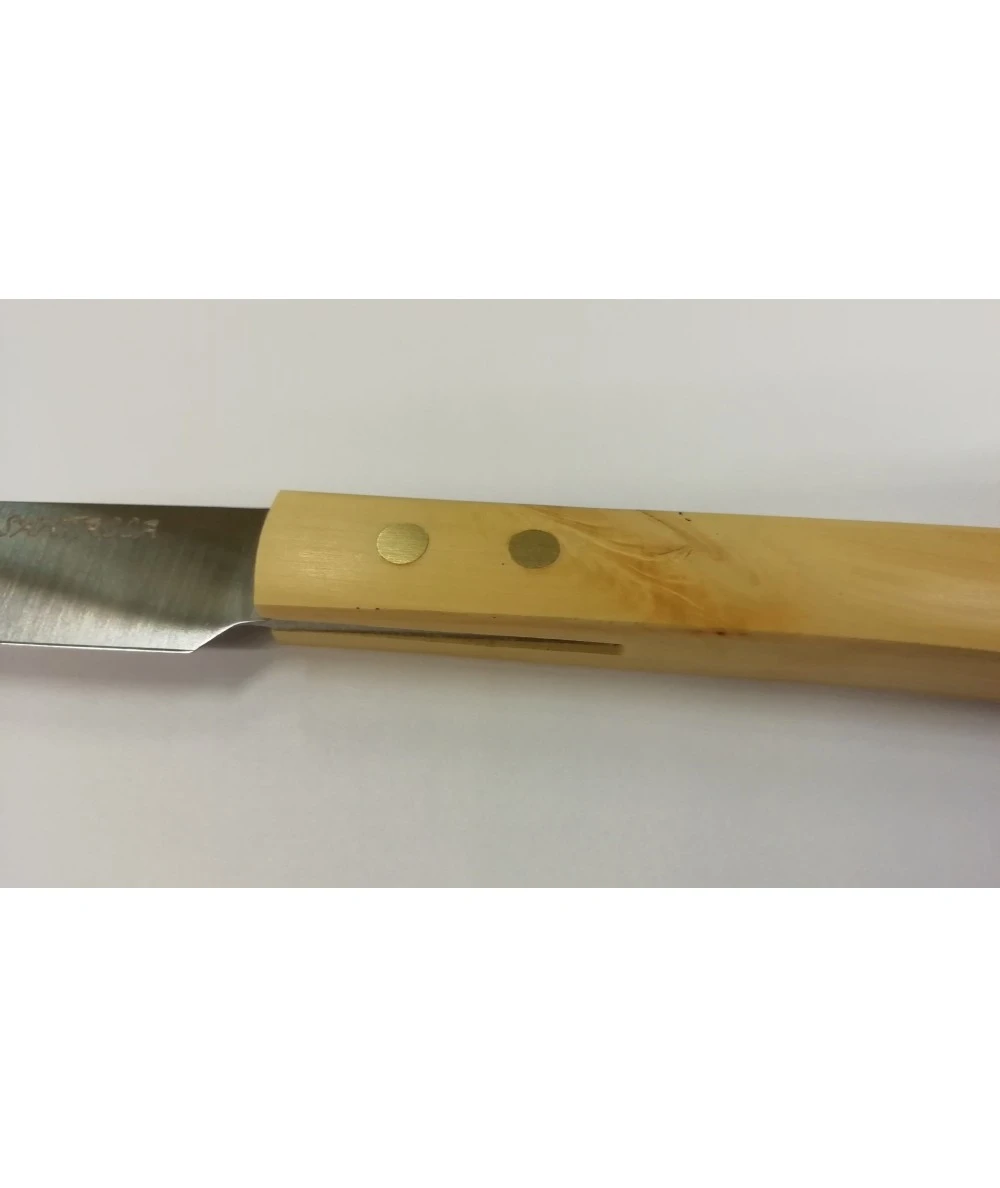 El cuchillo artesanal de mesa Santalla HYOTTOKO está fabricado con madera de Boj y acero ACX-380 en la zona de Santa Eulalia de Oscos (Asturias) por el artesano Jorge Román Toquero.