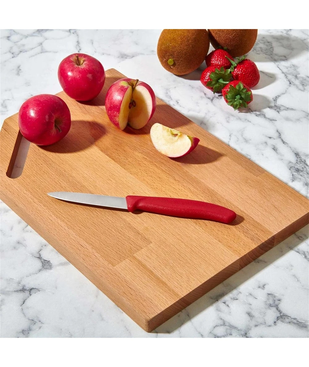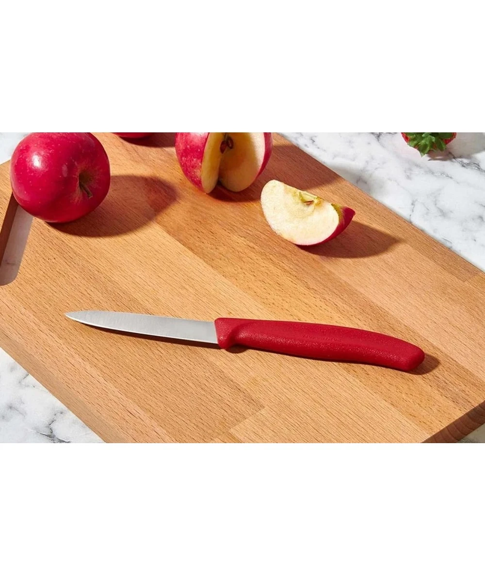 Un cuchillo para verdura es la herramienta más útil del chef para trabajos de precisión en la cocina y nuestro cuchillo mondador Swiss Classic para verdura de 8 cm es un destacado del cajón de cuchillos, no sólo por su paleta de colores frescos, sino también por su borde afilado y punta centrada. Extraiga semillas de pimienta con destreza, descorazone rápidamente una manzana, rebane una pila de verdura en tiras o trozos finalmente en pequeños cuadrados perfectos. Cualquiera sea la tarea que haga, los cortes suaves y uniformes de este cuchillo para verdura darán como resultado platos tan hermosos como nutritivos.