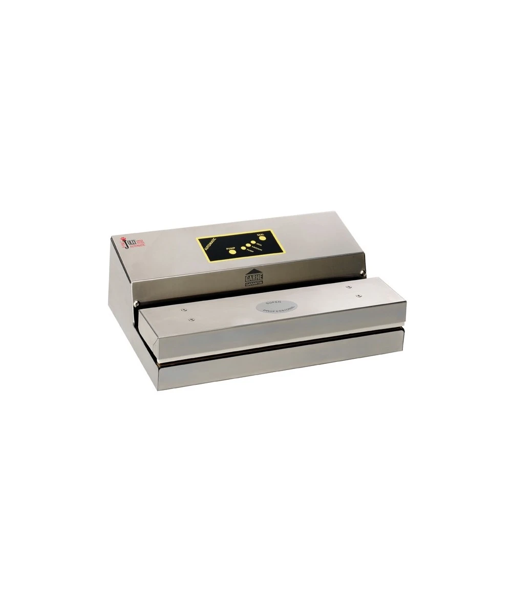 Envasadora automática en acero inox compacta, ligera y muy fácil de usar, que combina las grandes prestaciones de los modelos semiprofesionales con la sencillez de uso de los modelos más domésticos.
