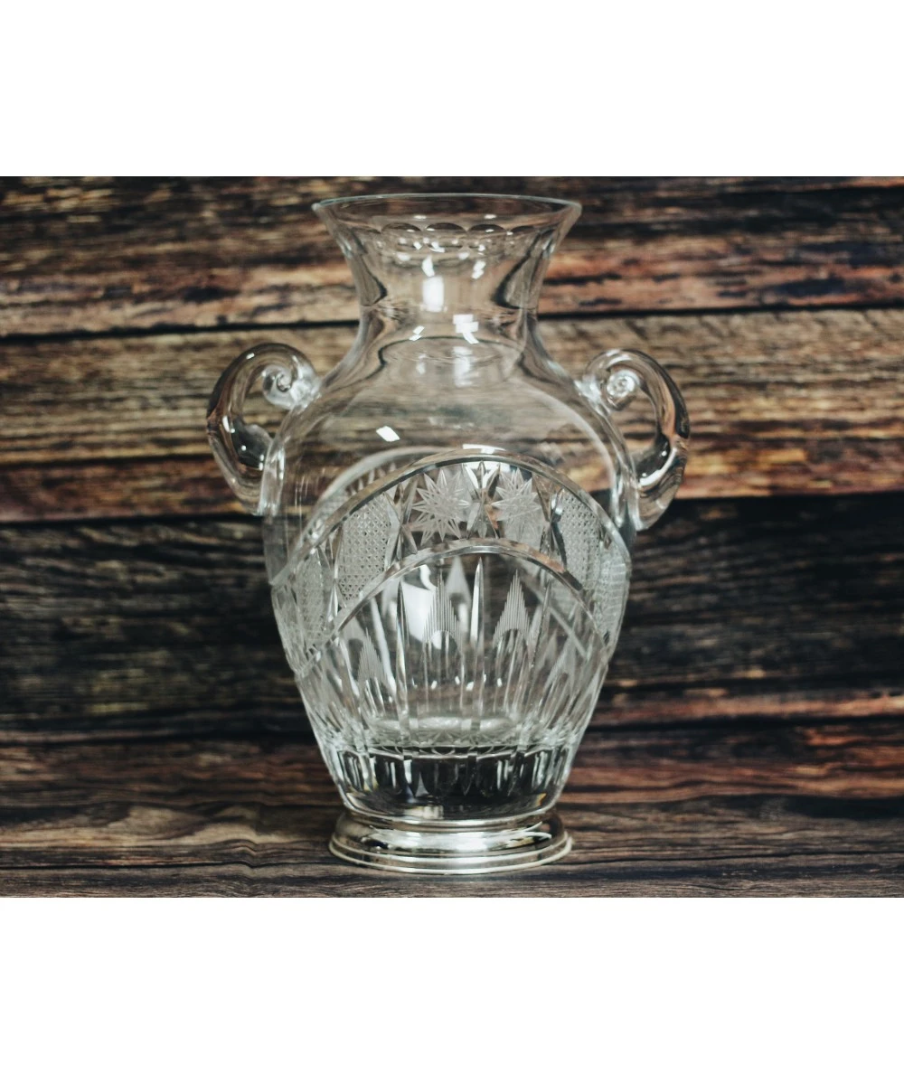 FLORERO CRISTAL DE BOHEMIA ÁNFORA CON PLATA