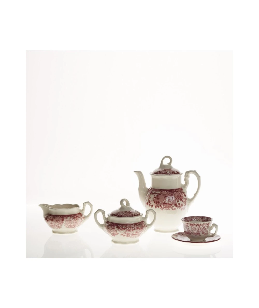 Juego de café de 15 piezas colección Aurora 202 Rosa. Piezas fabricadas a mano con loza fina en España.