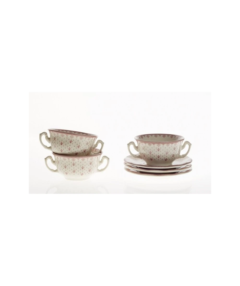 JUEGO DE CONSOMÉ 24 PIEZAS FLOR DE LIS ROSA