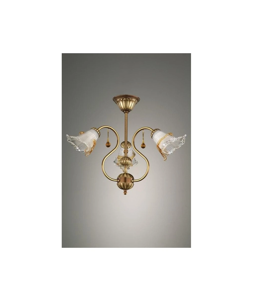 Lámpara de bronce y cristal de murano, de fabricación nacional.