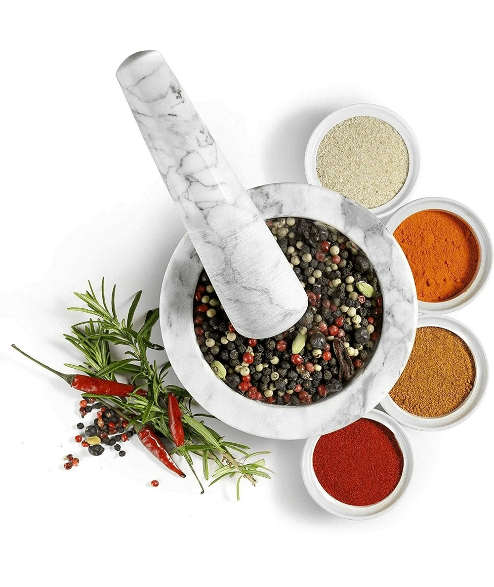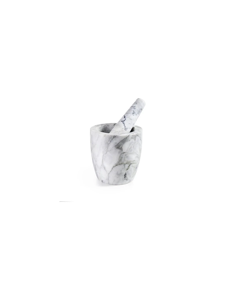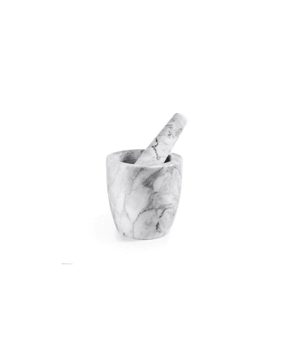 Este mortero de mármol con mano también de mármol,está pesado para mezclar y macerar ingredientes de manera tradicional para aliñar tanto carnes como pescados. Emulando los morteros de piedra, constituye por su material no poroso, un producto de excelencia fácil de lavar (lavar preferiblemente a mano).