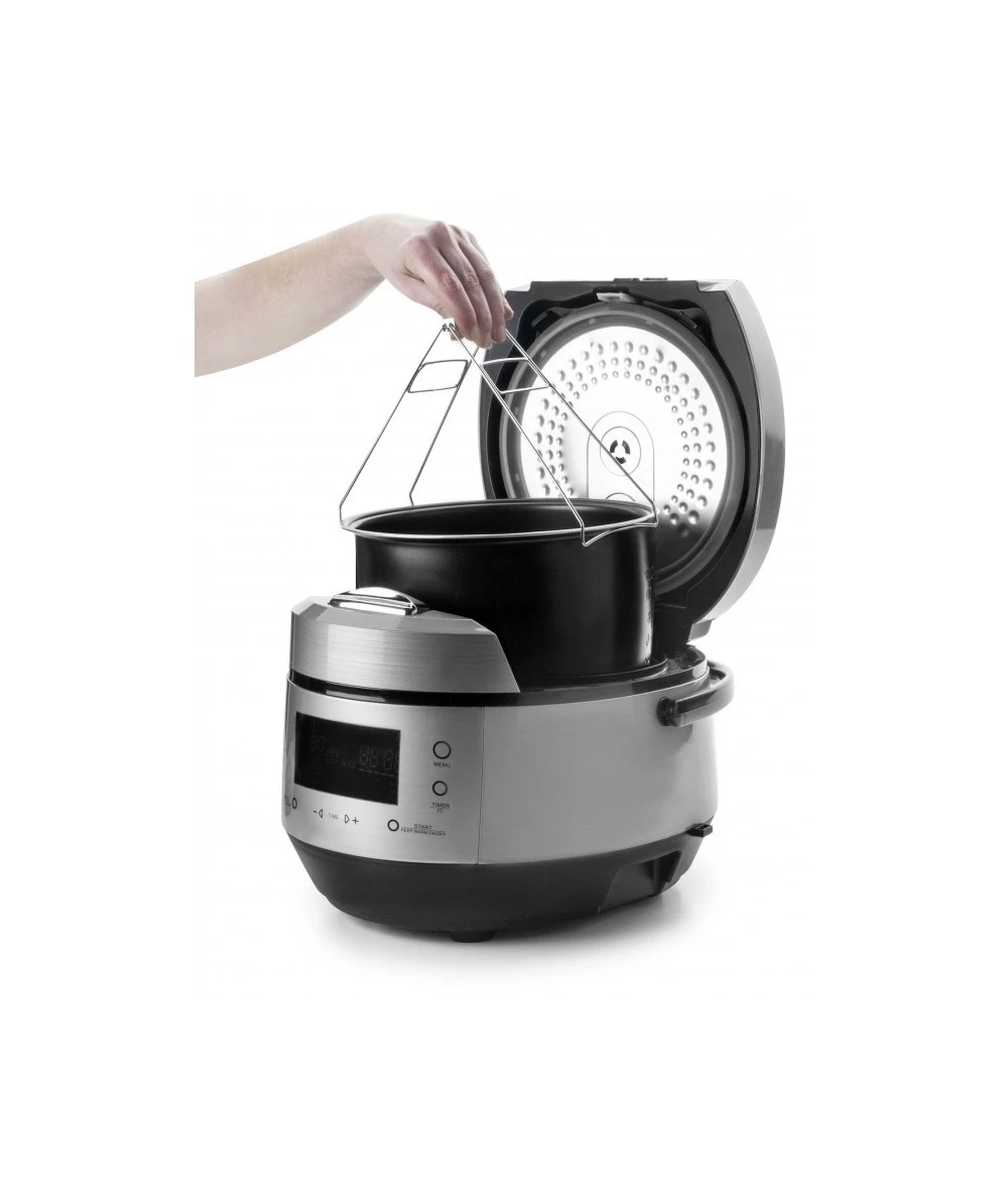 Además de ser programable, esta novedad de Lacor está herméticamente sellada para obtener una mejora del sabor sin perder los nutrientes, consta de pantalla LCD táctil y en dos idiomas (castellano e inglés) y puede realizar hasta 20 funciones distintas, entre las que figuran la multicocción, el cocinado rápido, la autolimpieza o el vapor, entre otras.