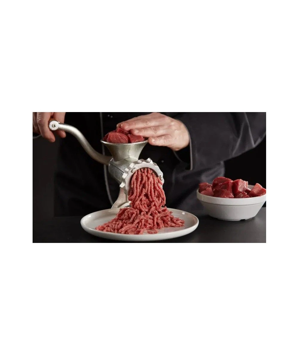Permite acoplar una tolva, de manera que respetando el ancho de la boca se garantiza una seguridad total y a la vez se aumenta aún más la producción al poderse cargar más carne.
