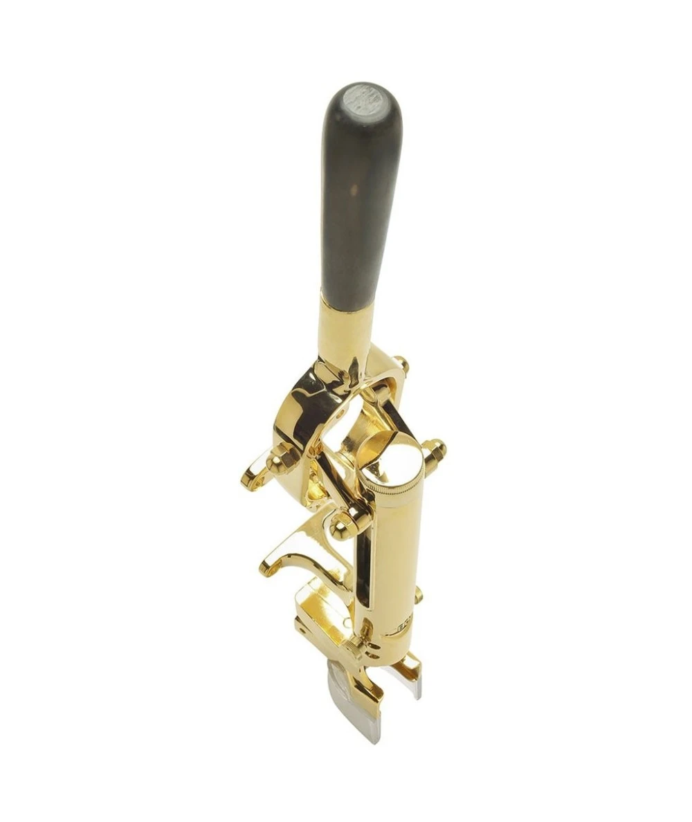 - MATERIALES: tanto el mango y como el soporte están hechos de sapele, un árbol originario del África Tropical también conocido como Aboudikro. Algunos fabricantes de automóviles de lujo utilizan también esta madera para sus vehículos de alta gama. El cuerpo está compuesto principalmente de zamak, un material resistente compuesto de zinc y otras aleaciones. El elemento que entra dentro del corcho es una espiral fresada hecha de acero. Sólo por orden especial, también está disponible un modelo de oro de 24 quilates.