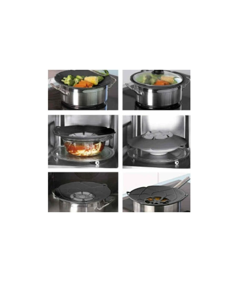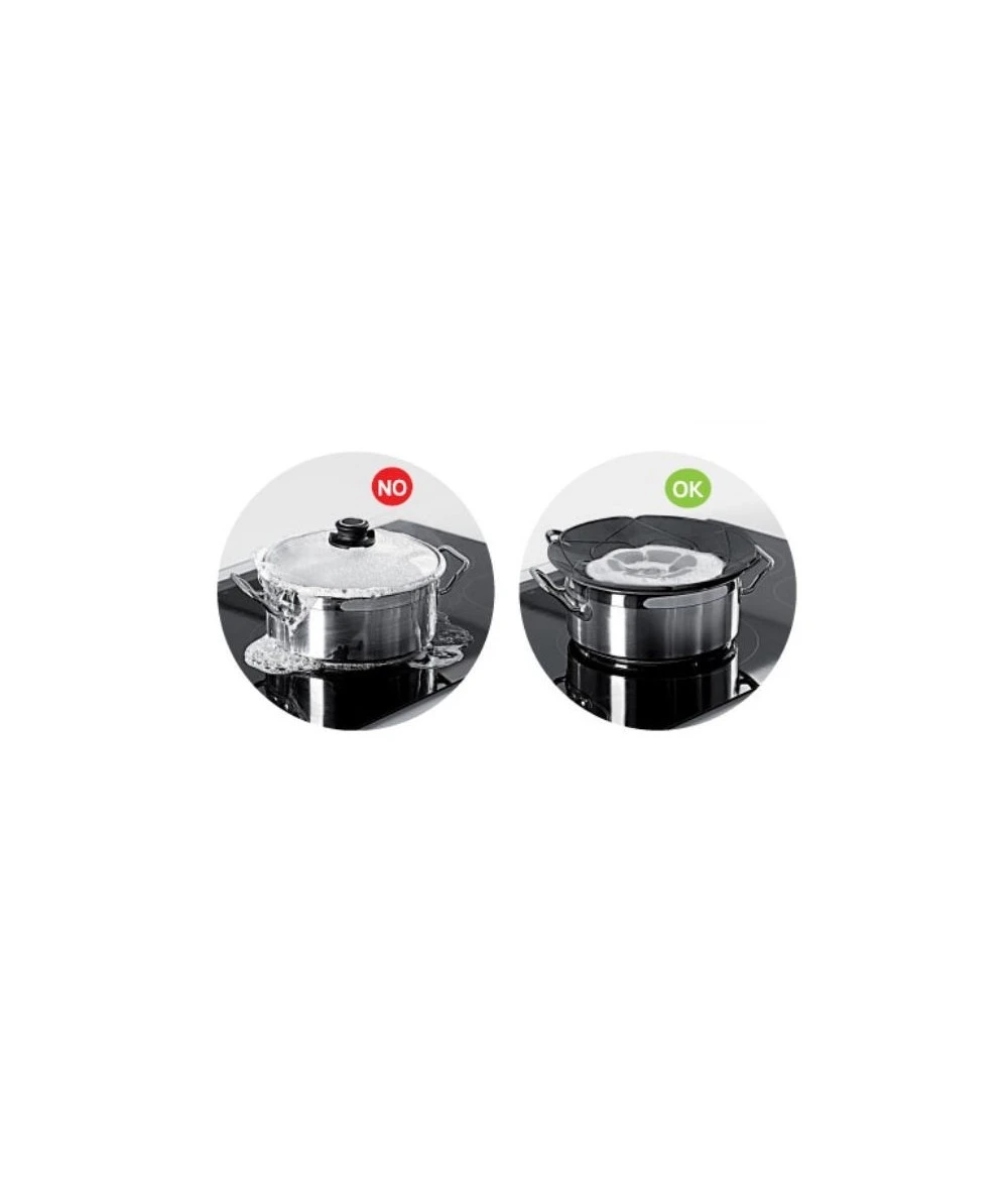 Se puede utilizar en ollas, cacerolas, cazos, sartenes, cuencos de cristal… desde 14 a 28 cm de diámetro.