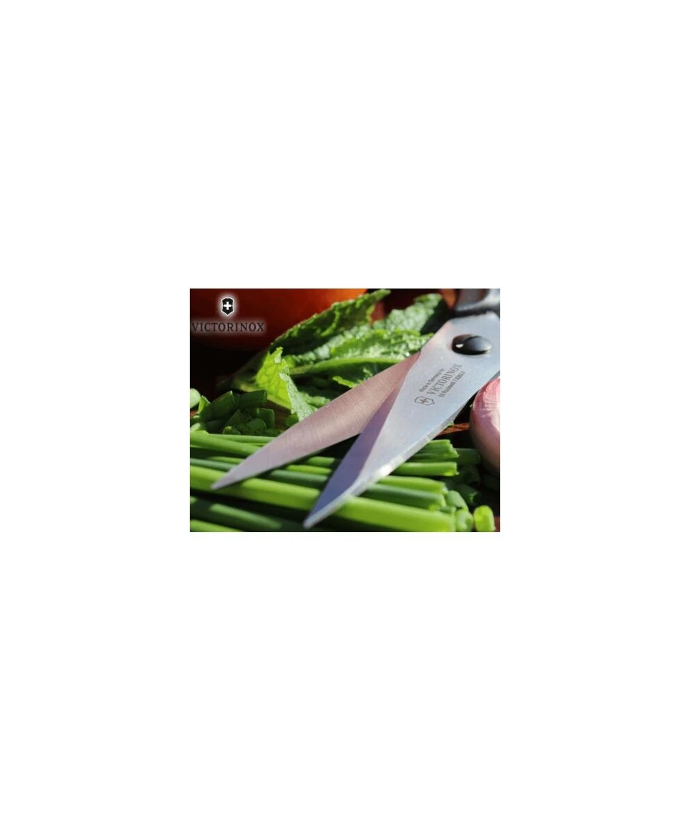 Nuestras tijeras de cocina universal son un verdadero todoterreno de la cocina. Las hojas están formadas de acero inoxidable excepcionalmente duro y poseen filo microdentado para sostener diferentes materiales de corte en su lugar de forma eficaz. Como en todos nuestros productos, los mangos de estas tijeras de cocina son fuertes, prácticos y están hechos de material sintético irrompible. Las tijeras poseen una cavidad diseñada para cascar nueces o para ayudar a abrir tapas difíciles de frascos.