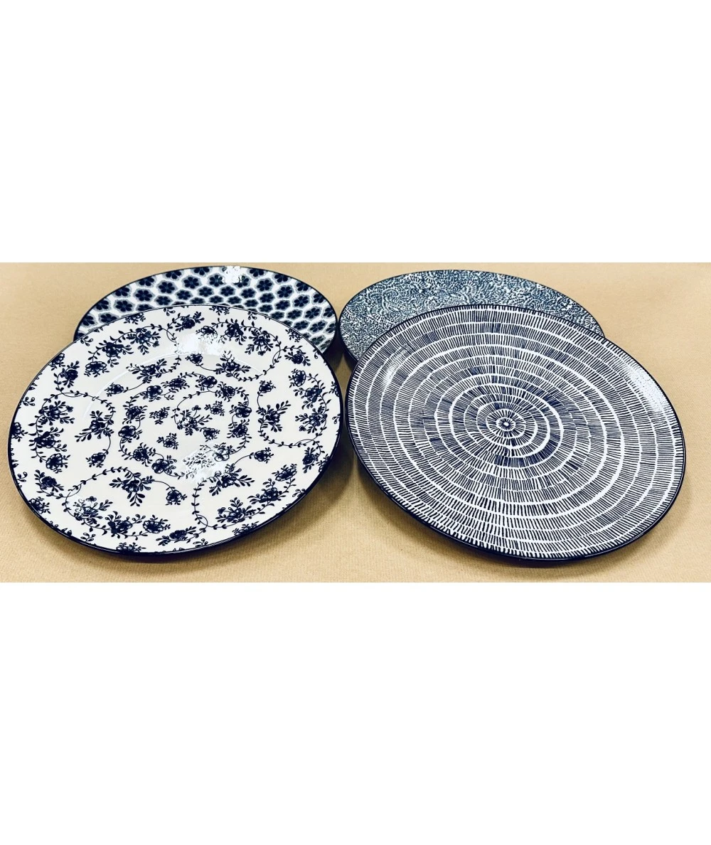 - Este set de vajilla de porcelana para 4 comensales, está compuesto por platos hondos, llanos y de postre, y ofrece 4 elegantes decorados para una mesa en armonía a través del color y la combinación de diseños.