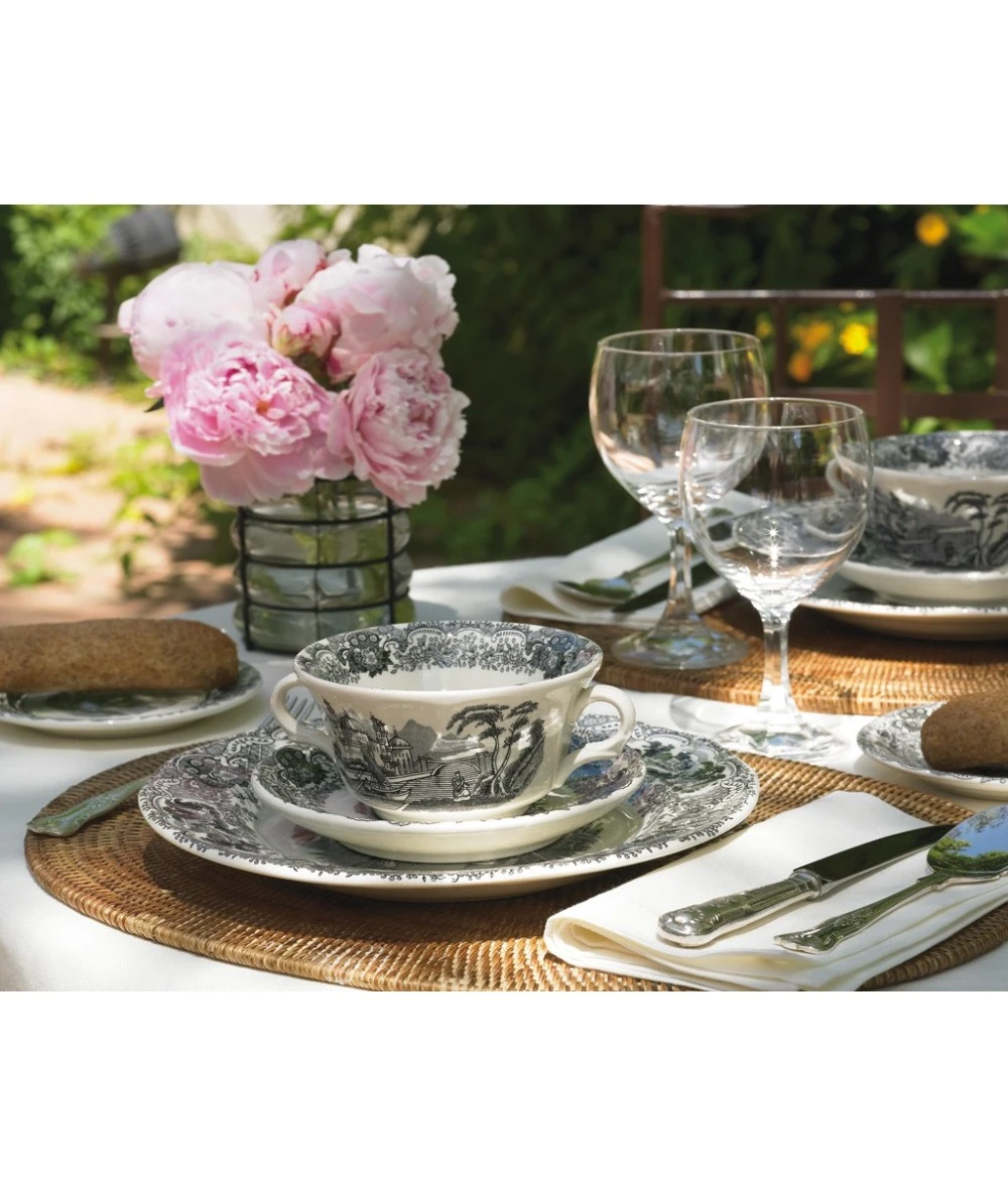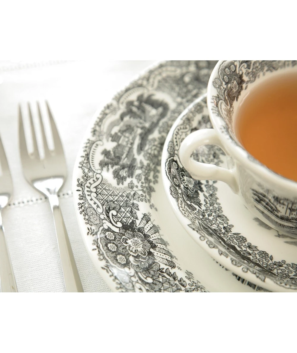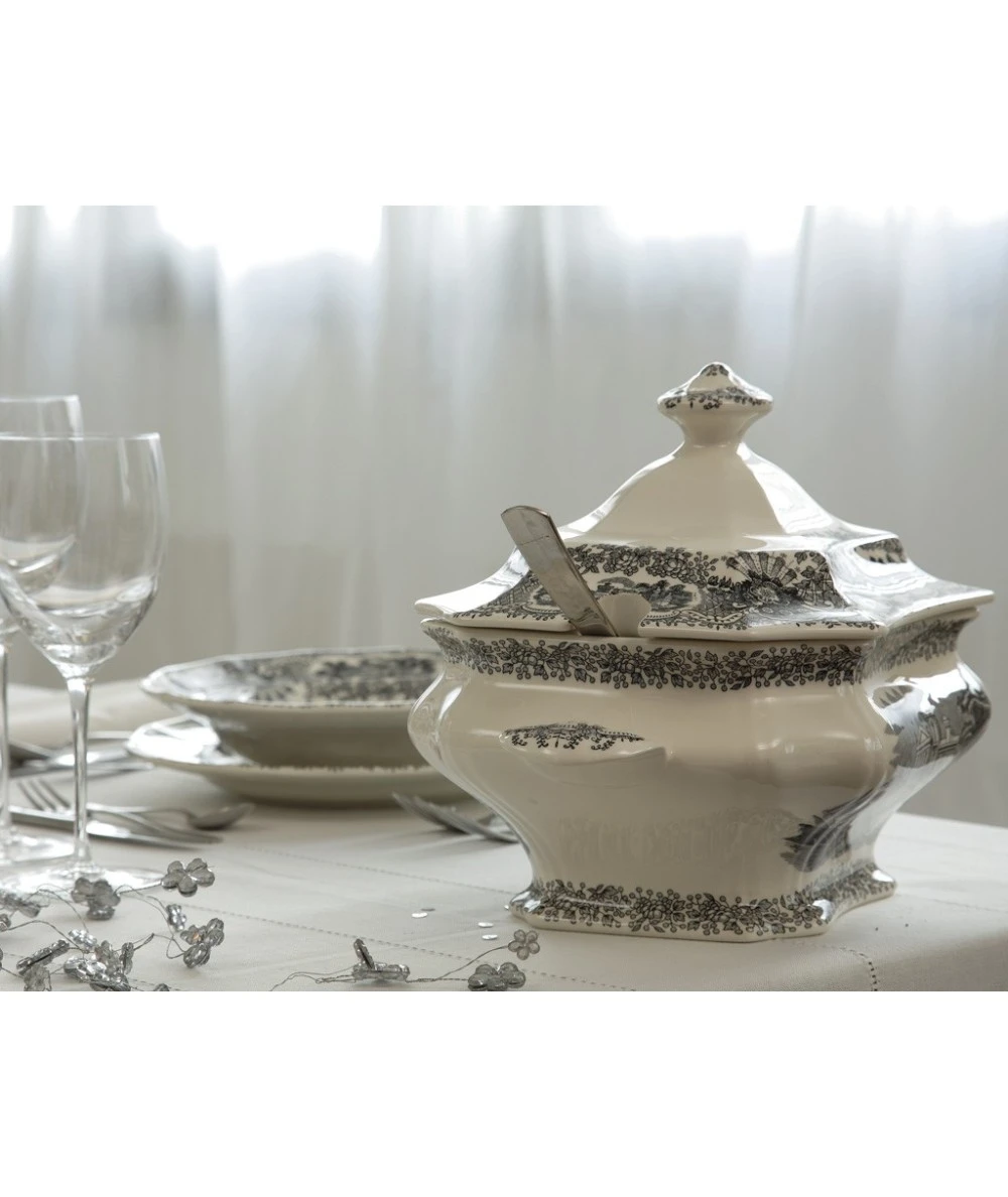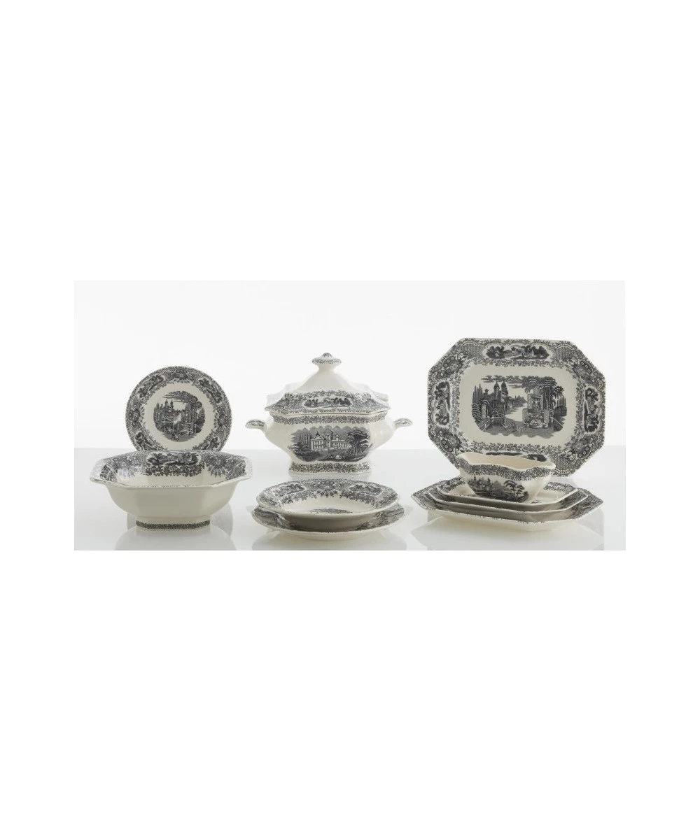 Sobre la forma Ochavada se reproduce una composición de fantasía, con aires neoclásicos, que se fabrica prácticamente sin cambios desde el año 1841 hasta nuestros días. Un motivo central con paisajes o «vistas» idealizadas, enmarcadas por una greca de guirnaldas de flores, rocallas y celosías. La técnica original es la de grabado sobre plancha de cobre con buril y martillo.